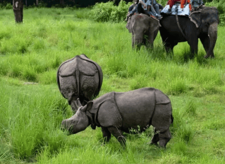 Jeep or canoe adventures through grasslands and sal forests. Spot rhinos, deer, and maybe a tiger.