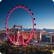 Catch the Bellagio fountains at night — but for a more elevated view, book a table at the Eiffel Tower Restaurant across the street.